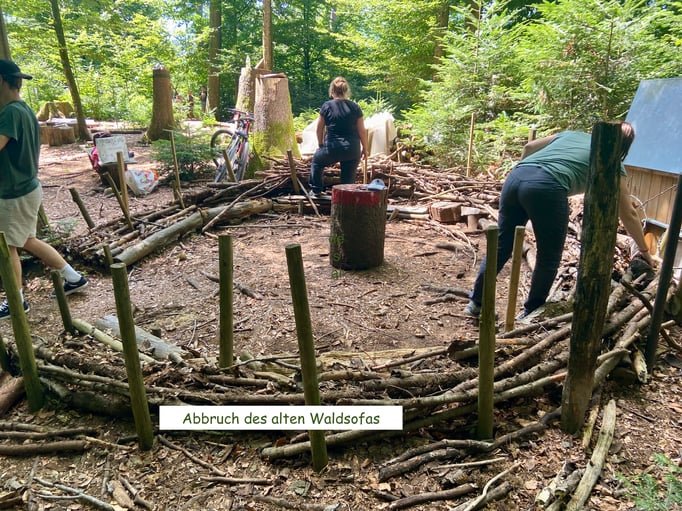 Am 8./9. Juli 2022 bauten wir ein neues Waldsofa mit tatkräftiger Unterstützung vieler Helfer:innen. Dank Sponsoren, welche uns Holz, Pfähle und Werkzeug zur Verfügung gestellt haben, konnten wir das neue Waldsofa sehr kostengünstig erneuern.